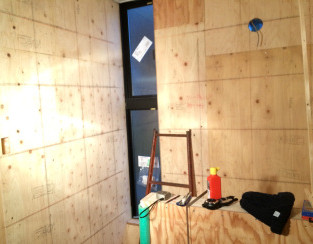 さて、工事の方はフローリングの床貼りが終わり、続いてタイル貼りです。